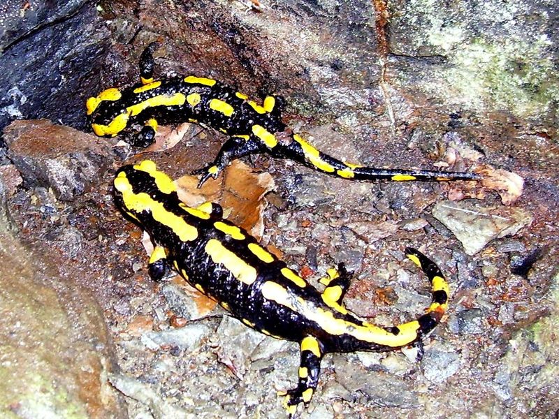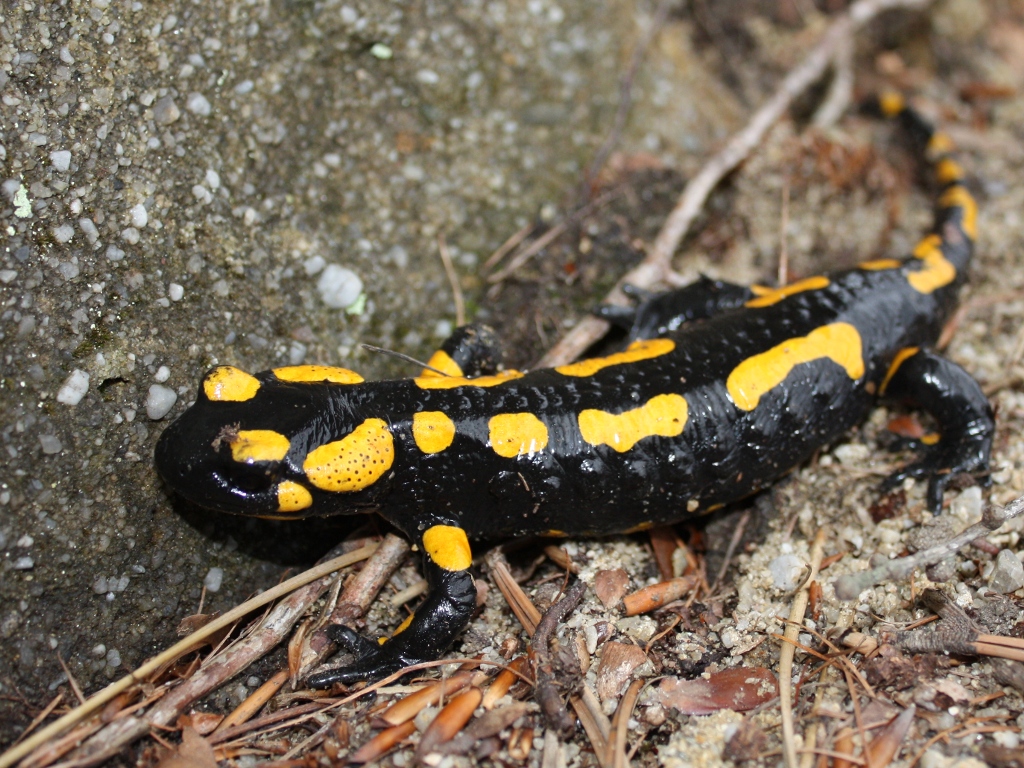 Se trata de un urodelo de cuerpo robusto que puede alcanzar los 280 mm de longitud total. La cabeza es deprimida, ancha, redondeada y con los ojos prominentes, detrás de los cuales, pueden observarse un par de glándulas parótidas, arriñonadas, bien desarrolladas situadas una a cada lado y en las cuales, pueden verse los poros glandulares a simple vista en forma de pequeños puntitos negros. La cola presenta una sección subcilíndrica y las extremidades son robustas, presentando como es típico: cuatro dedos en las extremidades anteriores y cinco en las posteriores. La piel es lisa y presenta una coloración muy característica que varía según las subespecies. Típicamente, consiste en una coloración aposemática basada en manchas amarillas que destacan sobre un fondo negro (la coloración aposemática, generalmente de colores brillantes, es la coloración que utilizan algunos animales para advertir a sus posibles depredadores de la presencia de veneno. En algunas poblaciones de determinadas zonas de la Península Ibérica, se pueden encontrar ejemplares con coloraciones anaranjadas y rojizas.